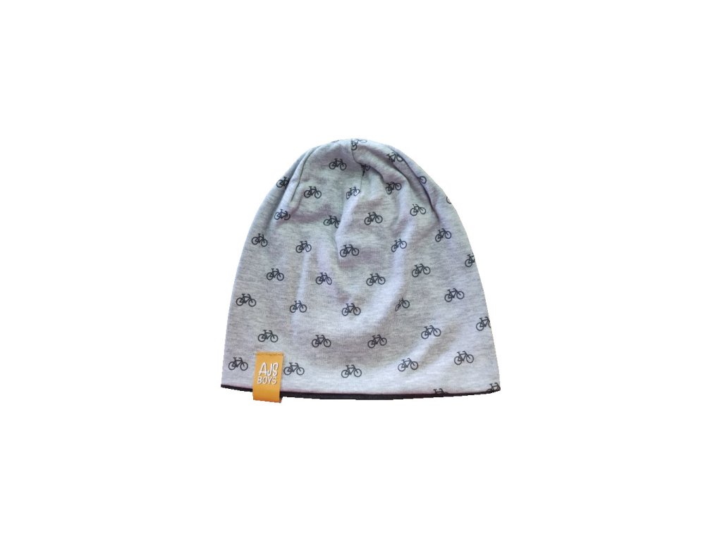 Chlapecká dvojitá prodloužená čepice na jaro nebo podzim s motivem kola.