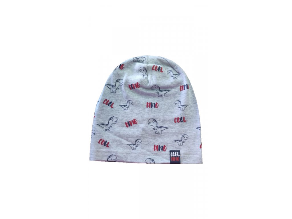 Chlapecká prodloužená čepice na jaro nebo podzim s motivem dinosauři.