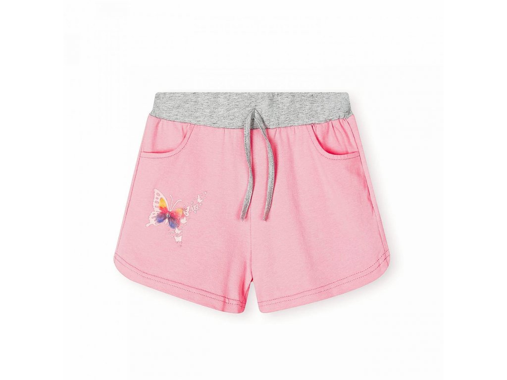 Dívčí kraťasy s gumou v pase a šňůrkou na ozdobu. Kraťasy mají dvě kapsičky, motiv motýl.