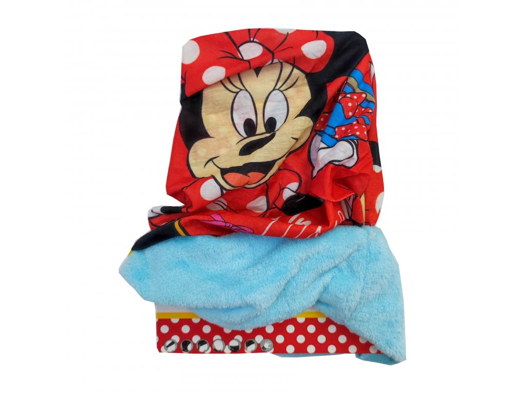 Zateplený multifunkční nákrčník. Jedna část je vyrobena z příjemného materiálu s obrázkem Minnie Mouse. Druhou část tvoří hřejivý fleec. Lze ho použít jako šálu, čelenku, nebo jako ochranu obličeje před větrem a mrazem.